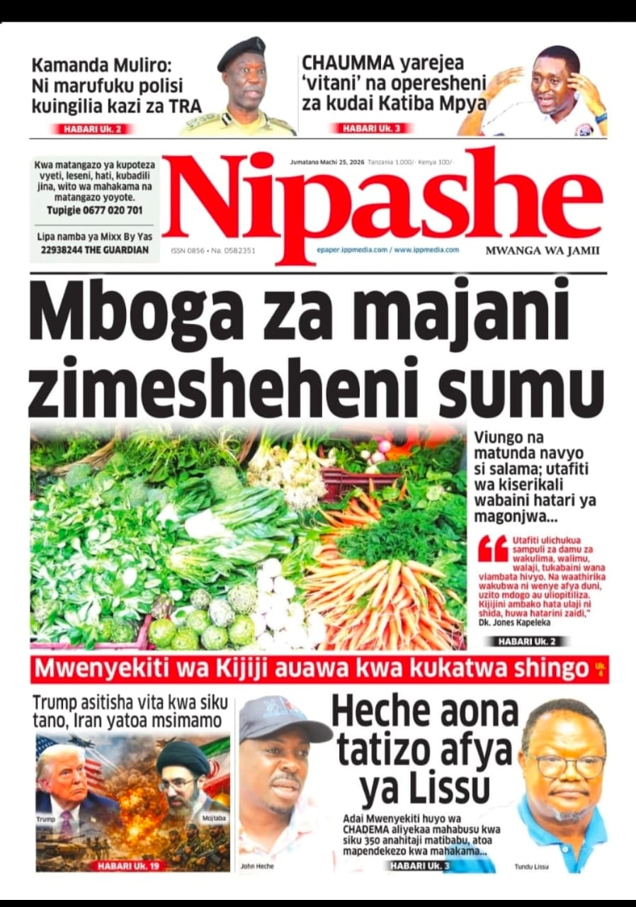 Mboga za majani zimesheheni sumu, SOMA KATIKA MAGAZETI YA LEO JUMATANO HAPA